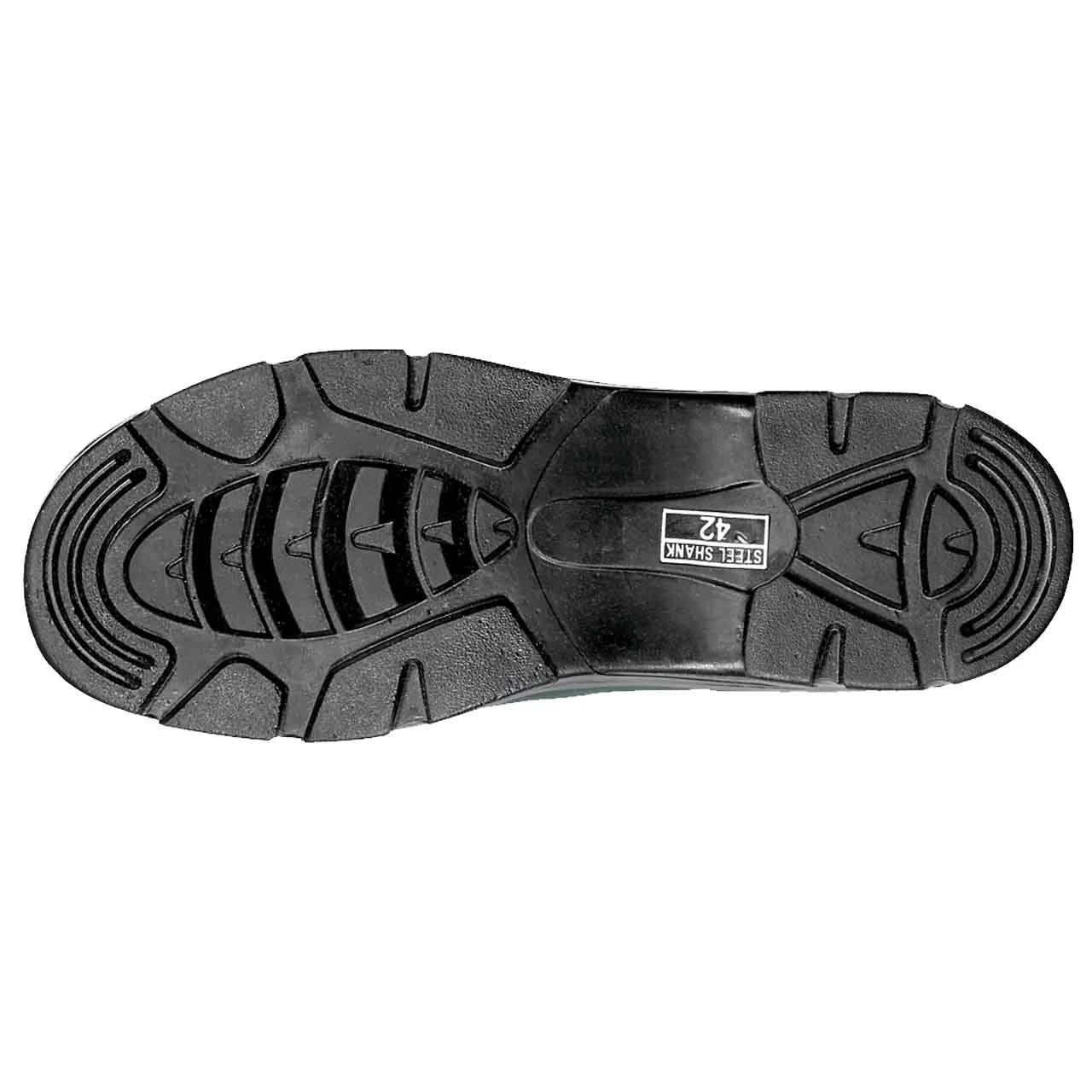 + Sohle: öl- und säureresistente, selbstreinigende, griffige Naturkautschuksohle mit „Steel Shank“-Verstärkung