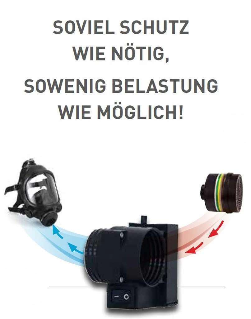 + mit gutachterlicher Stellungnahme der DEKRA EXAM in Anlehnung an DIN EN 12942:2009-02 (Gebläsefiltergeräte)